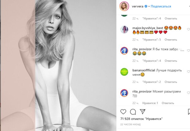 “Така картина однозначно могла б стати подарунком 😍 У мене ось над ліжком висить картина коханої дівчини ♥ ️🔥, Віра, дивлячись на ваші фотографії, відпочиваю душею. Вони завжди теплі і гармонійні. Ви велика молодець !!!, Обожнюю цю фотографію 😍😍⚡️ opulence 💥, Ось круто, коли у жінки сексі-погляд! Ніяк не збагну, як навчитися так в камеру дивитися😉 “, – написали віддані фанати.