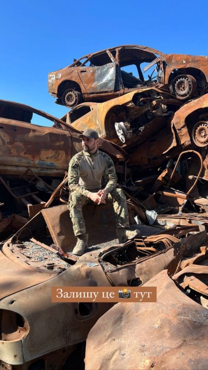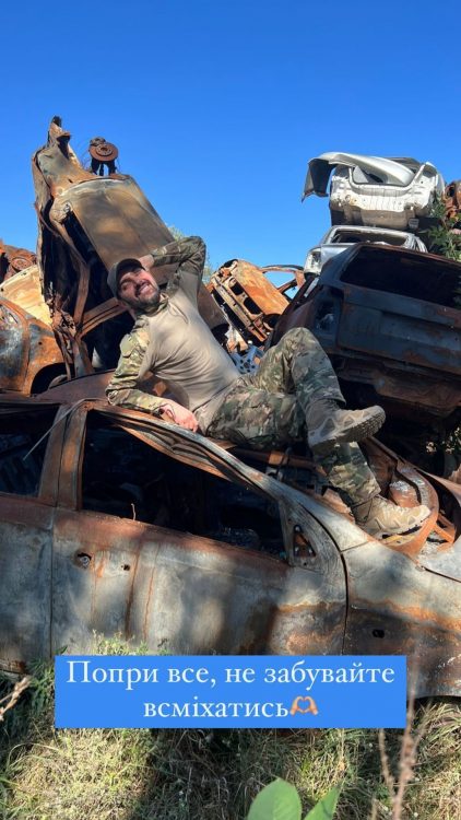 Нещодавно чоловік запостив світлини, на яких позує на тлі спалених автівок. Кадрами Віталій Козловський поділився в Instagram-stories. “Залишу це фото тут, щоб ви згадали про мене. Попри все, не забувайте усміхатись”, – підписав фото співак. На одній із світлин він щиро усміхається, позуючи у військовій формі.
