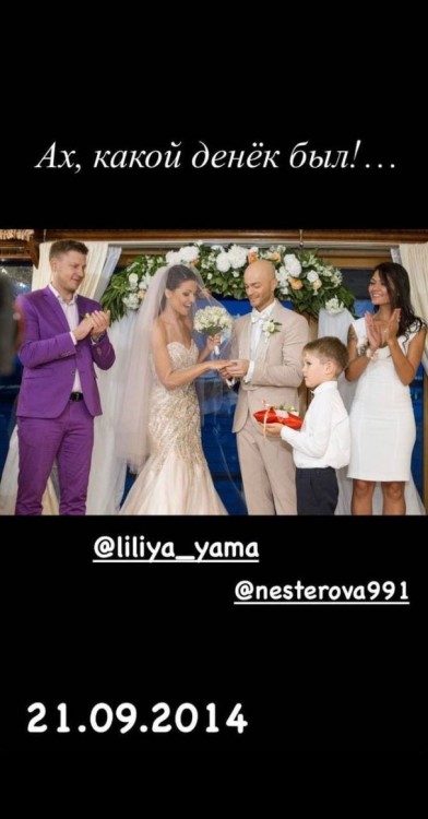 В той день Влад Яма був дуже щасливим. Перед камерою він позував у красивому костюмі бежевого кольору. Кохана дружина хореографа зображена у весільній сукні, яка чудово підкреслила її ідеальну фігуру. На архівному фото закохані обмінюються обручками та демонструють щасливі усмішки.