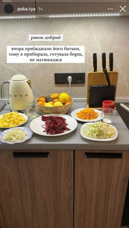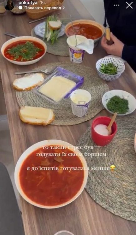 Дівчина вирішила пригостити її борщем. Однак, дружина Володимира Остапчука відверто зізналась, що дуже хвилювалась. Спочатку Катерина Полтавська зайнялась прибиранням у квартирі, а потім почала готувати борщ. Дівчина пожартувала, що підготовка до іспитів була набагато легшою, ніж зустріч з рідними чоловіка.