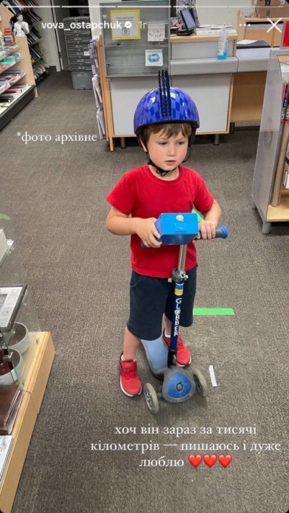 “Сьогодні Остапчуку молодшому виповнюється шість років. Хоча він зараз за тисячі кілометрів — пишаюся і дуже люблю”, – підписав фото зірка українського шоу-бізнесу. Перед камерою син Володимира Остапчука постав усміхненим та задоволеним. Хлопчик позував на самокаті, насолоджуючись моментом.