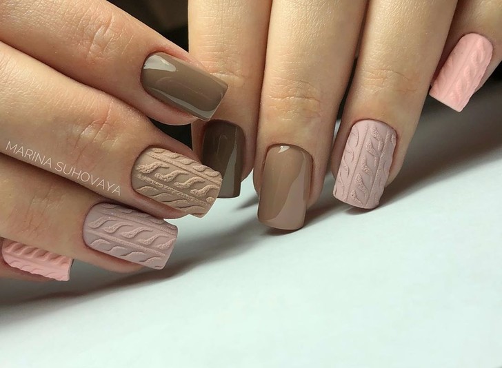 Вдома такий манікюр зробити важко, тому варто записатися в салон, якщо вільне віконце знайдеться, звичайно. В’язаний дизайн стильно виглядає на нігтях будь-якої довжини та в будь-якому кольорі, тому з вибором помилитися буде просто нереально. Ми підготували для вас 30 найкращих ідей – впевнені, ви знайдете серед них ідеальний манікюр для себе!