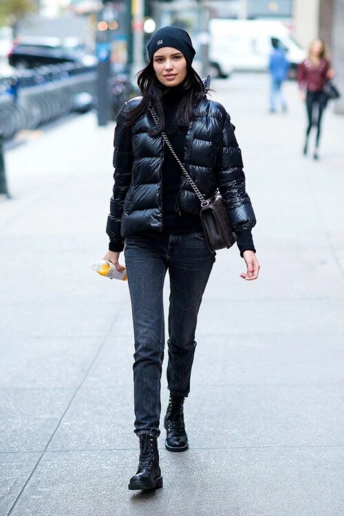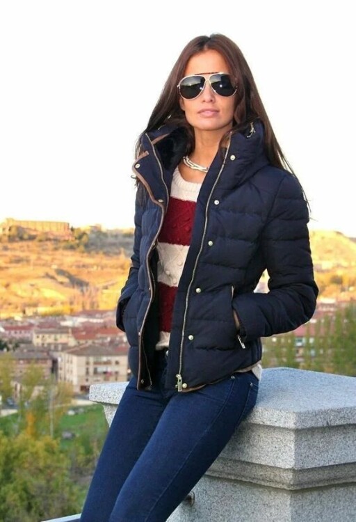 Облягаючі штани в дуеті з масивним верхом ще більше погіршують ситуацію. В якості альтернативи можемо порадити зручний спортивний оверсайз пуховик, який не сковує рухів, при бажанні талію можна підкреслити поясом.