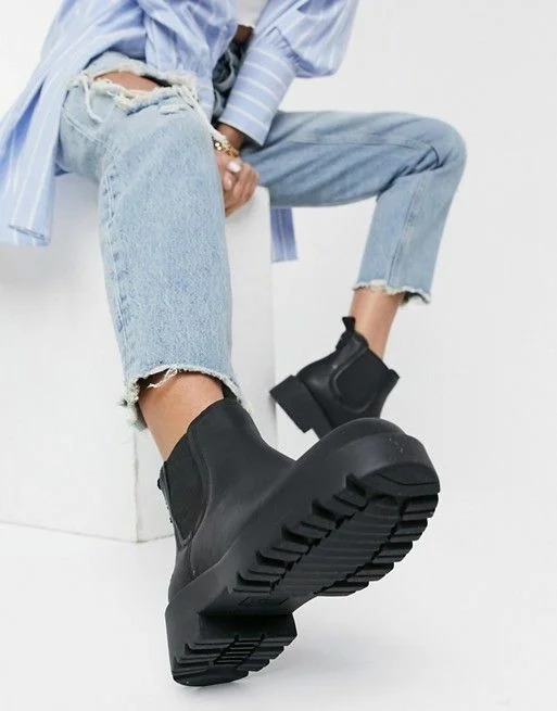 Коли осіннє сонечко перестає гріти, починаються дощі і морози, ідеальним варіантом взуття можуть стати масивні черевики Челсі. Просто чорний колір, просто тракторна підошва, просто мінімалізм – взуття, придбавши яке, ви точно не пошкодуєте!