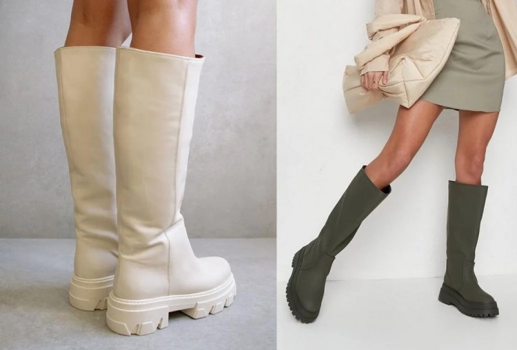 Тренд для тих, хто боїться замочити ноги під осіннім дощем. Такі моделі можна побачити в Zara та Mango. Строгі, високі чоботи, які підійдуть для будь-якої негоди. Підошва може бути тракторною та звичайною.
