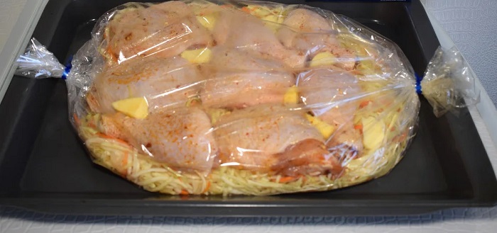Курку з овочами по праву можна вважати дієтичною стравою. А якщо запекти в рукаві, ціни їй не буде. Щоб відійти від класичних рецептів з картоплею та грибами, пропонуємо приготувати стегенця з капустою.