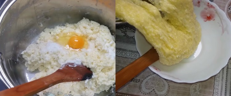 Викладіть суміш в миску, додайте яйце і соду, посоліть і перемішайте. Поверніть суміш на вогонь і варіть ще 10-15 хвилин до отримання тягучої консистенції.