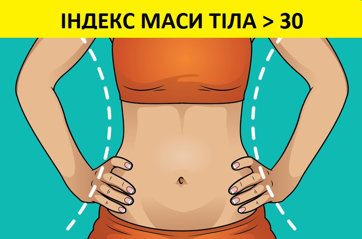 Живіт. Для жінок розмір талії більше 89 см служить ознакою ожиріння; для чоловічого тіла цей показник дорівнює 101,5 см.