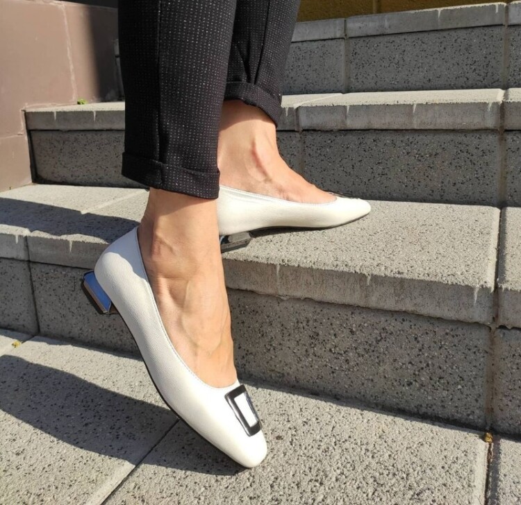 Одним з найяскравіших фасонів з низьким каблуком є балетки, схожі на пуанти.