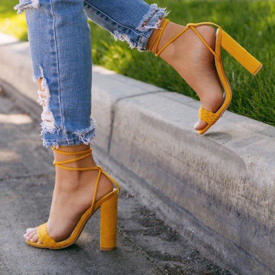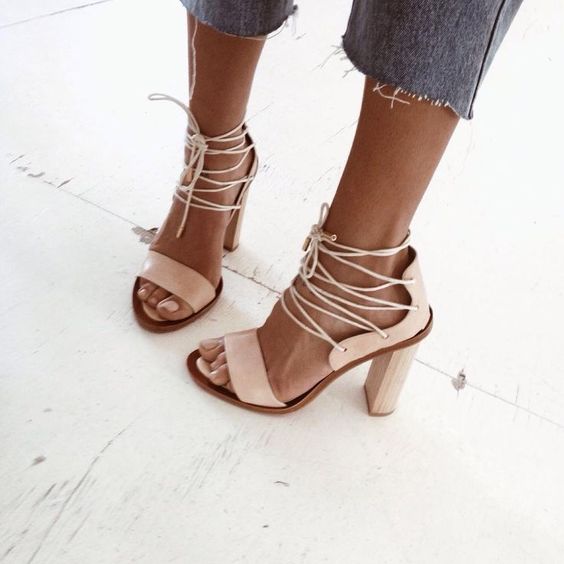Максимально трендовим взуттям для літа 2021 року стилісти одноголосно назвали босоніжки на шнурівці. П’ятка в такому взутті обов’язково повинна бути закритою, каблук – середній або високий і, природно, наявність шнурівки. Кольори і матеріал – чорна класична шкіра або плетена підошва поряд з тканинною обробкою. Виглядає дуже по-літньому.