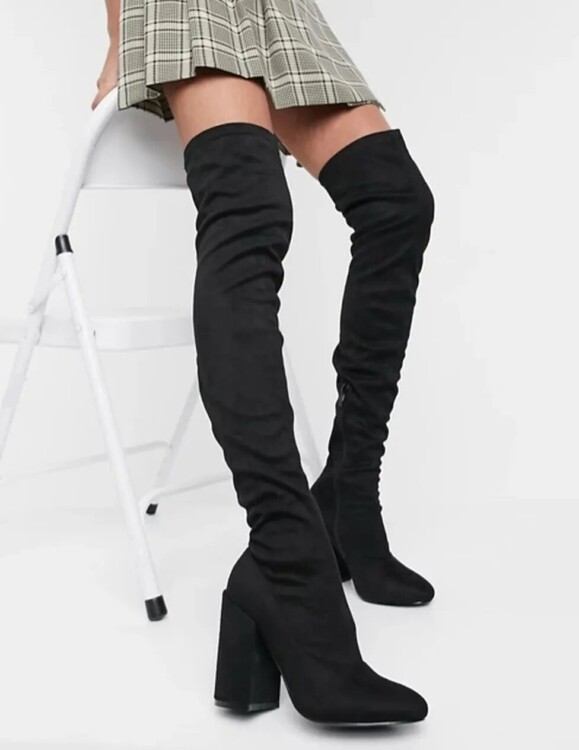 Більш стриманий і жіночний варіант – замшеві ботфорти на підборах. При виборі підходящої пари стежте за тим, щоб на верху халяви був регульований шнурок, який буде надійно тримати ботфорти на нозі. Якщо вони будуть хоч трішки великі в обхваті і не буде шнурка, при ходьбі ботфорти просто-напросто сповзуть.