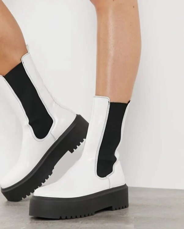 Коли одягаєш сукню або спідницю з низьким взуттям, важливо, щоб халява щільно облягала щиколотку. Це дозволить уникнути спотворення пропорцій фігури, а якщо одягнути колготки в тон, то ще й візуально подовжить ноги. Зверніть увагу на одну з найбільш трендових моделей черевиків цього сезону – челсі на платформі. Модниці у всьому світі активно їх носять з невагомими сукнями міді, сміливо міксують таке грубе взуття з ніжними атласними спідницями і оверсайз-светрами, а також одягають їх на вечірку з коктейльною міні-сукнею.