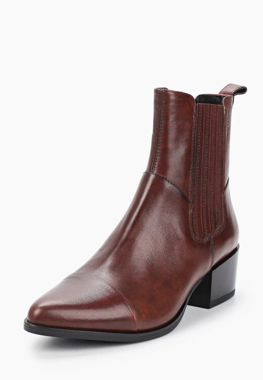 Гостроносі ботильйони на невисокому каблуці – завжди безпрограшний варіант взуття під сукні та спідниці. Гострий носок робить ботильйони максимально витонченими, завдяки чому вони ідеально комбінуються зі спідницями. Ми радимо підбирати до них колготки в тон, щоб ноги візуально здавалися стрункішими і довшими.