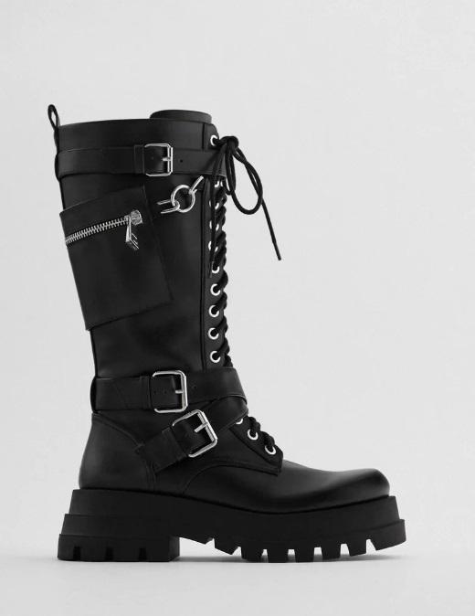 Грубі берці все ще втілюють військову строгість і дух протесту, але вже міцно засіли в наших гардеробах. Взуття, перевагу якому спочатку віддавали офіцери, а потім неформальні субкультури, в цьому сезоні стало ще брутальніше – тепер в пошані високі моделі зі шнурівкою. Якщо ви не могли вирішити, черевики обрати або ж чоботи, цей варіант – ідеальний компроміс.