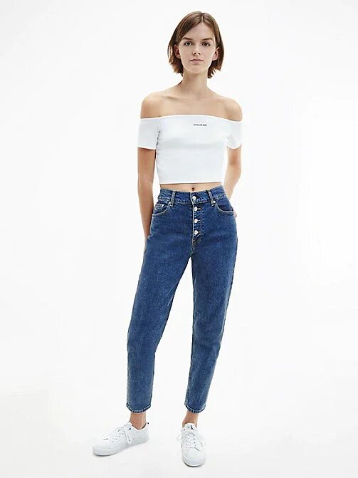 Джинси мом будуть мати гарний вигляд з заправленою в них футболкою. Стильний образ можна скласти, доповнивши цей фасон сорочкою в чоловічому стилі і взуттям на низькому ходу.
