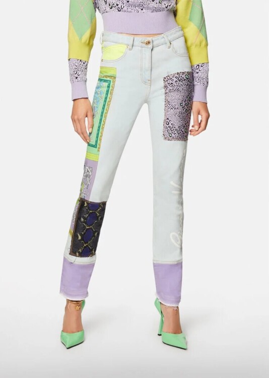Речі в стилі печворк можна сміливо комбінувати з однотонними предметами гардеробу або принтованими. Такі джинси будуть стильно виглядати в поєднанні з базовою футболкою або світшотом.