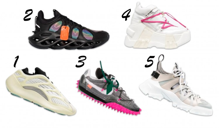1 – adidas YEEZY, 2 – Li-Ning, 3 – Nike X Off-White, 4 – Swear, 5 – MCQ