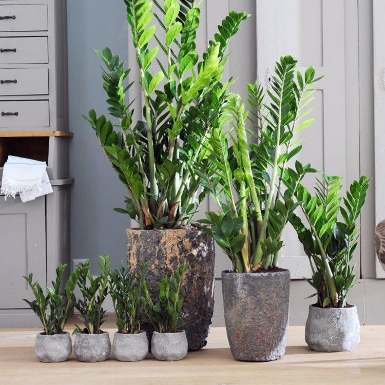 Або “доларове дерево”, як прозвали його в народі. Вважається, що воно, незалежно від курсу, приваблює статки своєму господареві. А з іншого боку — розмір та благополучний вигляд рослини відображають «натиск» грошового потоку, що проходить через приміщення. Тому заміокулькас так люблять вирощувати в офісах квітучих компаній. До того ж догляд за ним елементарний. Заміокулькас також люблять дизайнери інтер’єру, тому що він, по-перше, дуже гарно виглядає.