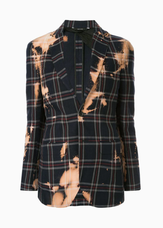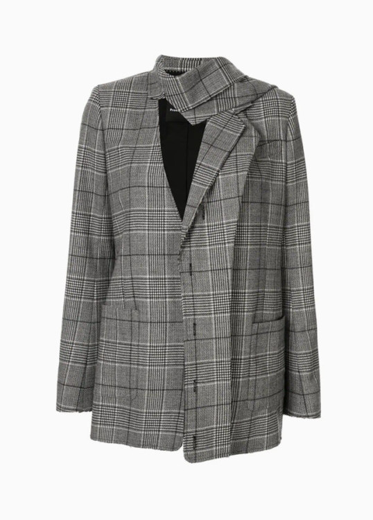 Цей піджак може бути асиметричного крою, з нерівними рядами ґудзиків, несподіваним бантиком на талії, плямами-розводами разом із суворою клітинкою. У нього повинна бути своя харизма, особливий настрій або історія.