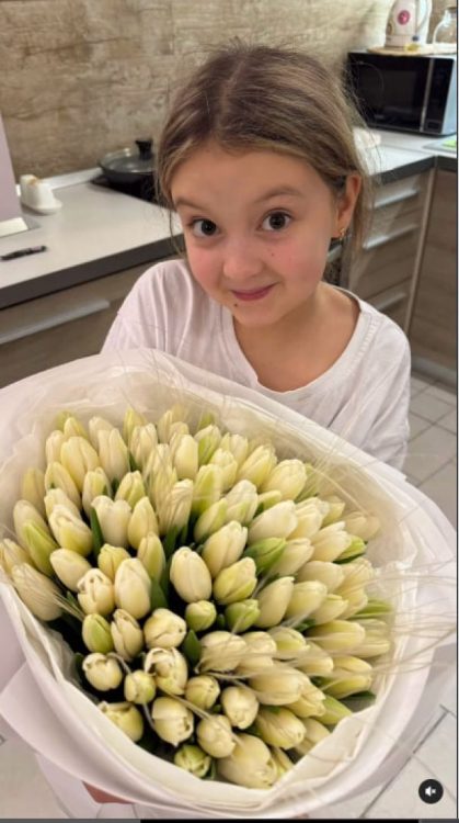 Юрій Ткач повідомив, що його донечка захворіла. Чоловік вирішив зробити їй приємно, тому подарував величезний букет білих тюльпанів. 9-річна Єлизавета неабияк зраділа такому сюрпризу. В соцмережі Instagram Юрій Ткач поділився новим фото. Він показав донечку-красуню, яка позувала з букетом тюльпанів. Перед камерою дівчинка щиро усміхалась, тримаючи в руках квіти. Актор дуже щасливий, що донечка залишилась задоволеною.