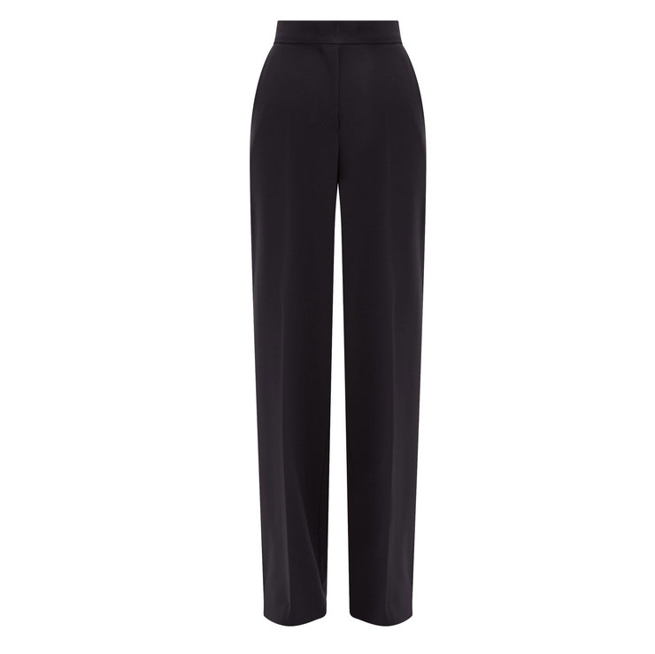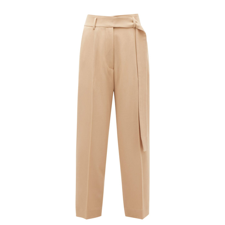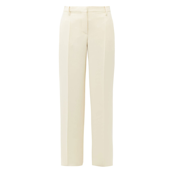 Прямі штани зі стрілкою – відмінна альтернатива джинсам. Вони візуально подовжують ноги шляхом вертикальної лінії й поєднуються практично з усім. Краща комбінація для роботи: штани пісочного відтінку, елегантна блузка і укорочений кардиган з мінімалістичним принтом.