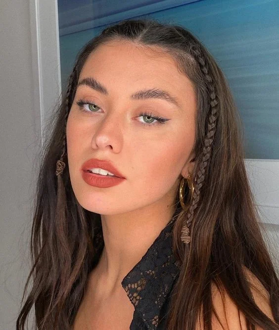 Легкі, романтичні і тонкі кілька кісок без гумок і зайвих прикрас, розташовані біля обличчя також є стильним варіантом для створення сучасної зачіски на кожен день. Виконати таку зачіску в домашніх умовах вийде у кожної з вас навіть без використання додаткових засобів для стайлінгу.