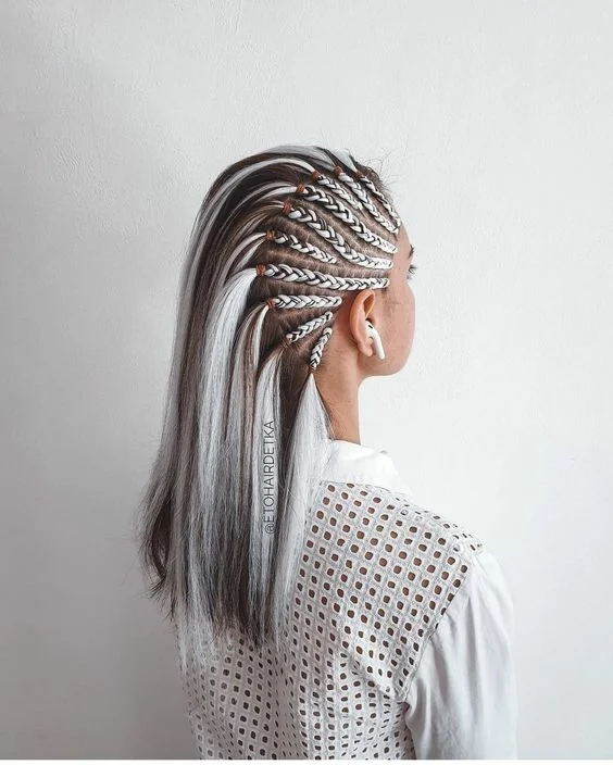 Дрібні косички-брейди актуальні в теплу пору року. Така зачіска – яскрава і смілива – підійде тим, хто любить нестандартні образи. Ви можете зробити брейди з власного волосся або додати штучні пасма, наприклад, контрастного відтінку.