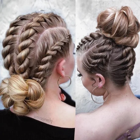 Об’ємні пишні коси – ще один варіант модної зачіски на будь-який випадок. Весілля, торжество або вечірка з подругами? Зручна і стильна зачіска з косою і пучком буде дуже доречною!