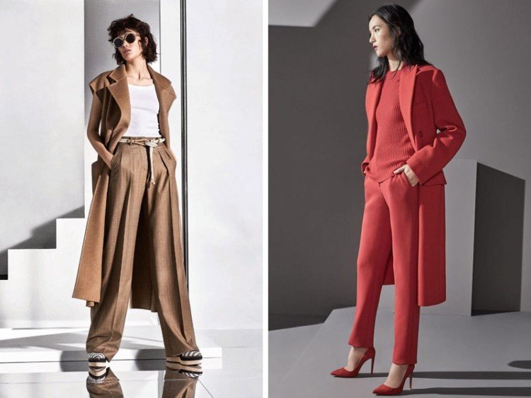 Штани прямого і розкльошеного крою з відпрасованими стрілками підходять для дам різної комплекції. Важливо вибрати модель з правильною посадкою, щоб пояс сидів строго на талії або трохи нижче. Так тіло витягнеться, ноги стануть тоншими, рівнішими.