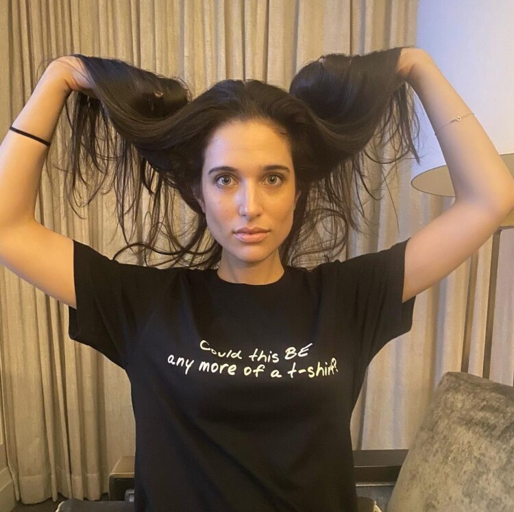 На першому знімку Моллі демонструє футболку з написом “Чи може це бути чимось більшим, ніж просто футболкою?”.