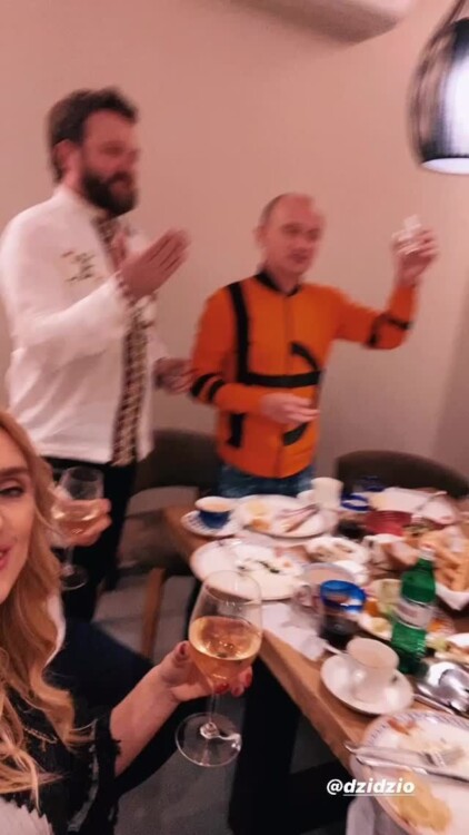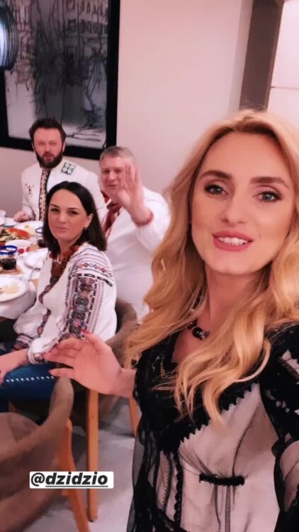 На світлині зображені гості, які сидять за святковим столом. Вони теж всі одягнені у вишиванки. А ще співачка опублікувала миле фото з Дзідзьо. Артист обіймає Ірину Федишин та щиро усміхається.