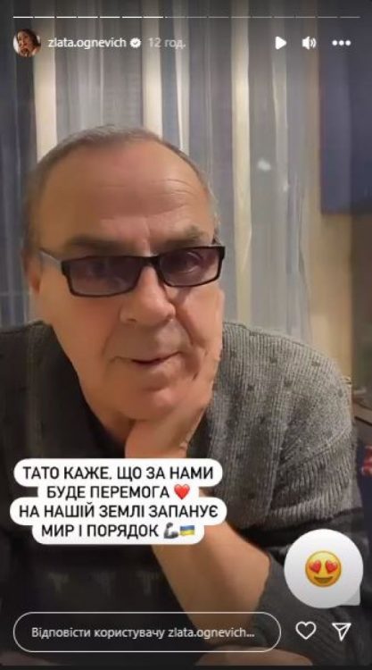 Співачка неабияк пишається своїм батьком. Також, за словами Злати Огнєвіч, рідна людина впевнена у перемозі. Батько співачки повідомив, що всім українцям потрібно бути терплячими та сильними. Втім, він переконаний, що наша країна обов’язково здобуде перемогу в цій війні.