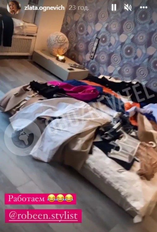 Злата Огнєвіч показала свою затишну та простору спальну. На її розкішному ліжку лежала велика кількість одягу. У квартирі співачки є велика гардеробна кімната. Також у спальні артистки можна розгледіти багато вазонів з квітами та книг. Головною гордістю помешкання Злати Огнєвіч є просторий гардероб з полицями.
