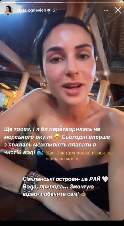 За словами співачки, спочатку вона хотіла відправитись на острів з красивими краєвидами. Проте, через неуважність зірка обрала локацію, де була брудна вода та плавали отруйні медузи. Фоловери відреагували на історію Злати Огнєвіч та порекомендувати бути уважнішою. А ще вони побажали зірці українського шоу-бізнесу хорошого відпочинку. За словами підписників, співачка виглядає дуже щасливою та задоволеною.