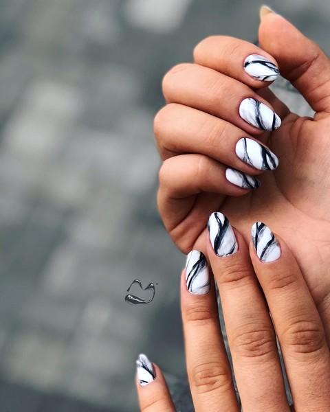Цієї зими такий дизайн набирає обертів, тому що унікальність малюнка полягає в тому, що кожен манікюр неповторний. Тож, якщо ви втомилися від однотонних нігтів, сміливо робіть мармур!