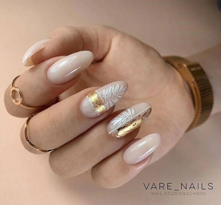 Манікюр з нотками золота – незмінно популярний кожного зимового сезону. Можна зробити помітний, кричущий манікюр, а можна поєднати красу нейтральних бежевих відтінків з незмінним золотим сяйвом.